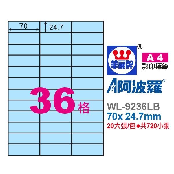 阿波羅A4影印紙 WL-9236LB | 華麗牌自粘標籤